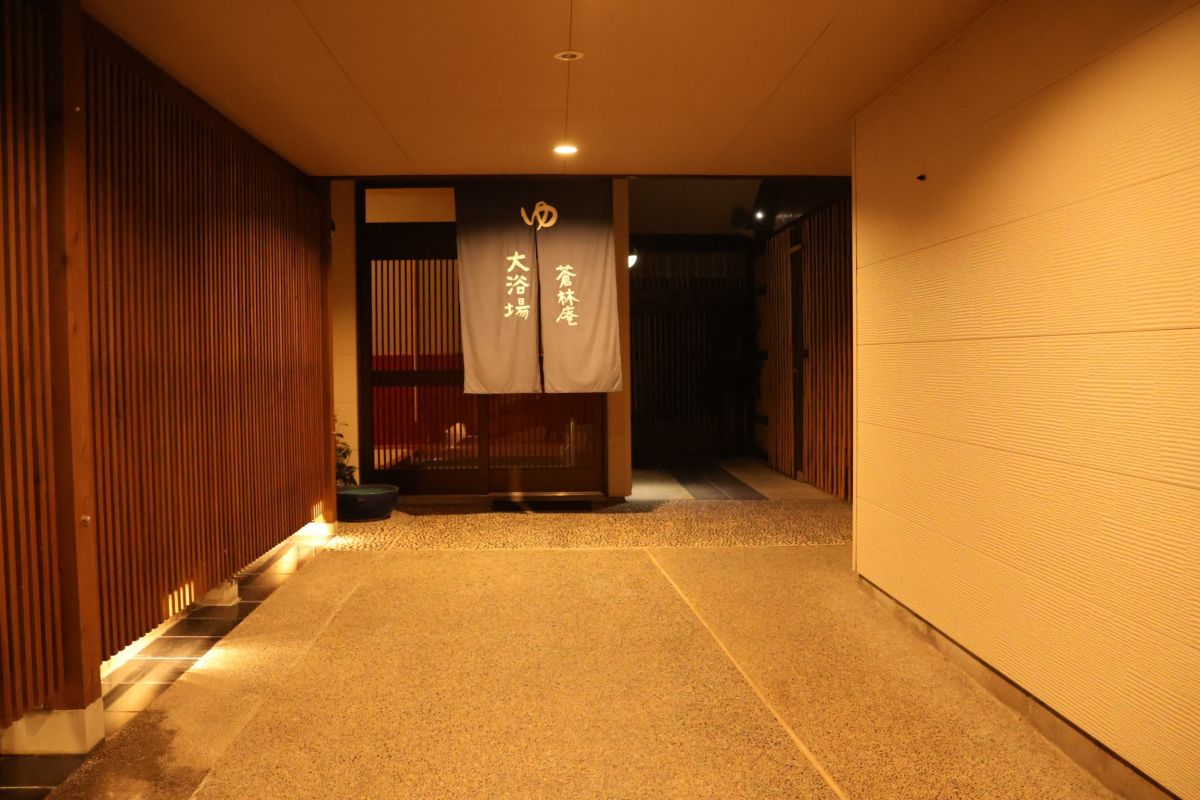 大浴場の蒼林庵は華海廊と同じ建物です。のれんの右側を進むと華海廊へ。