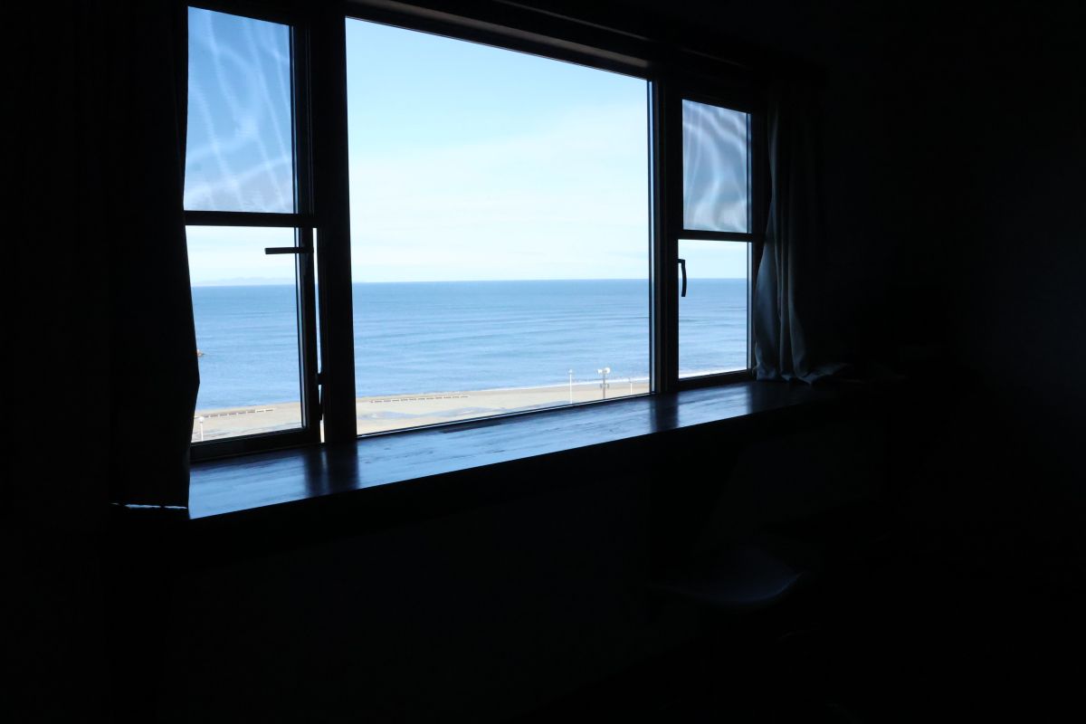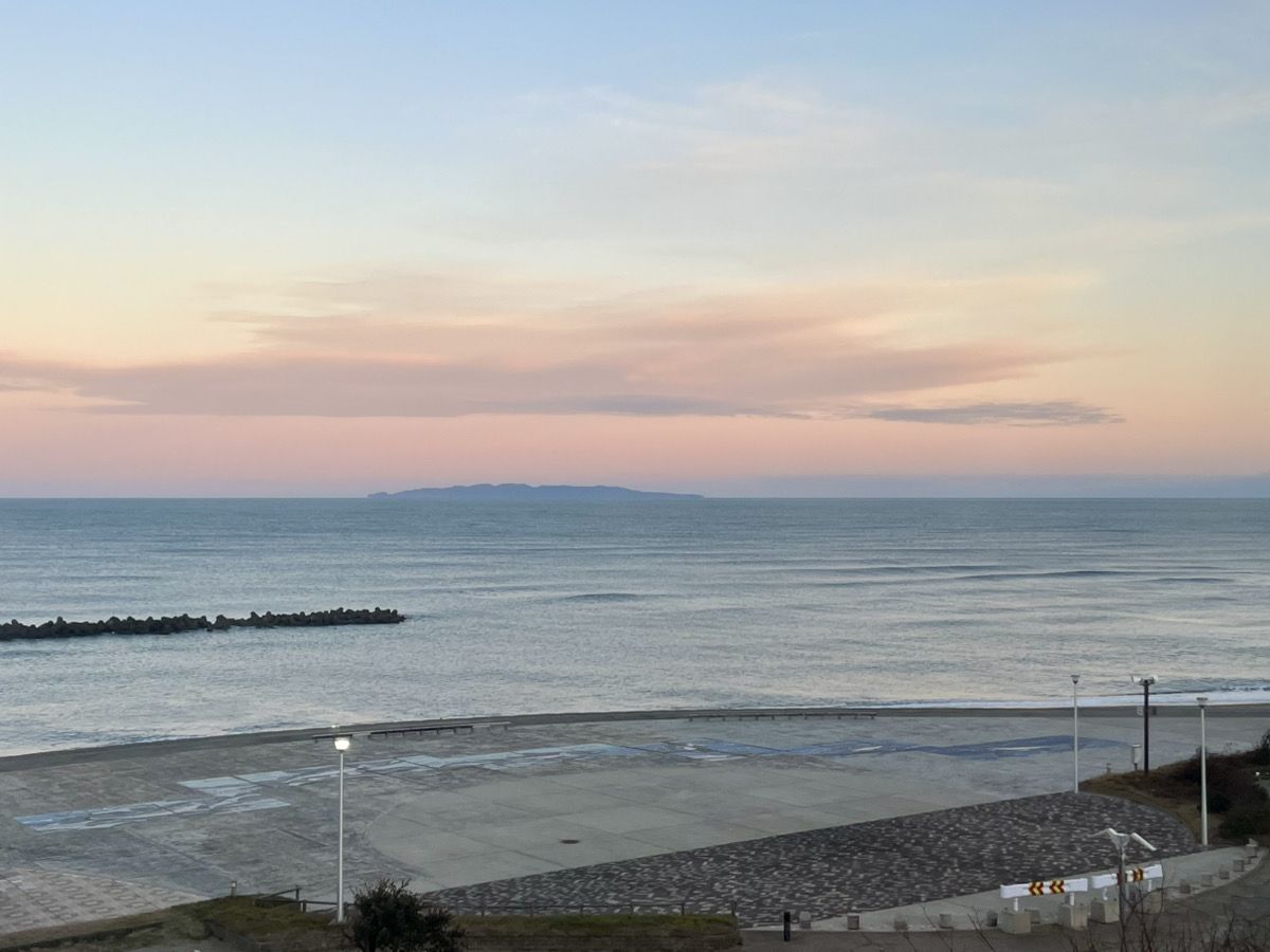 まっすぐ先に見えるのはおそらく粟島(あわしま)です。この色合いは本当に一瞬しかないので、窓を開けて波の音を聴きながらゆっくりこの時間を堪能しました。