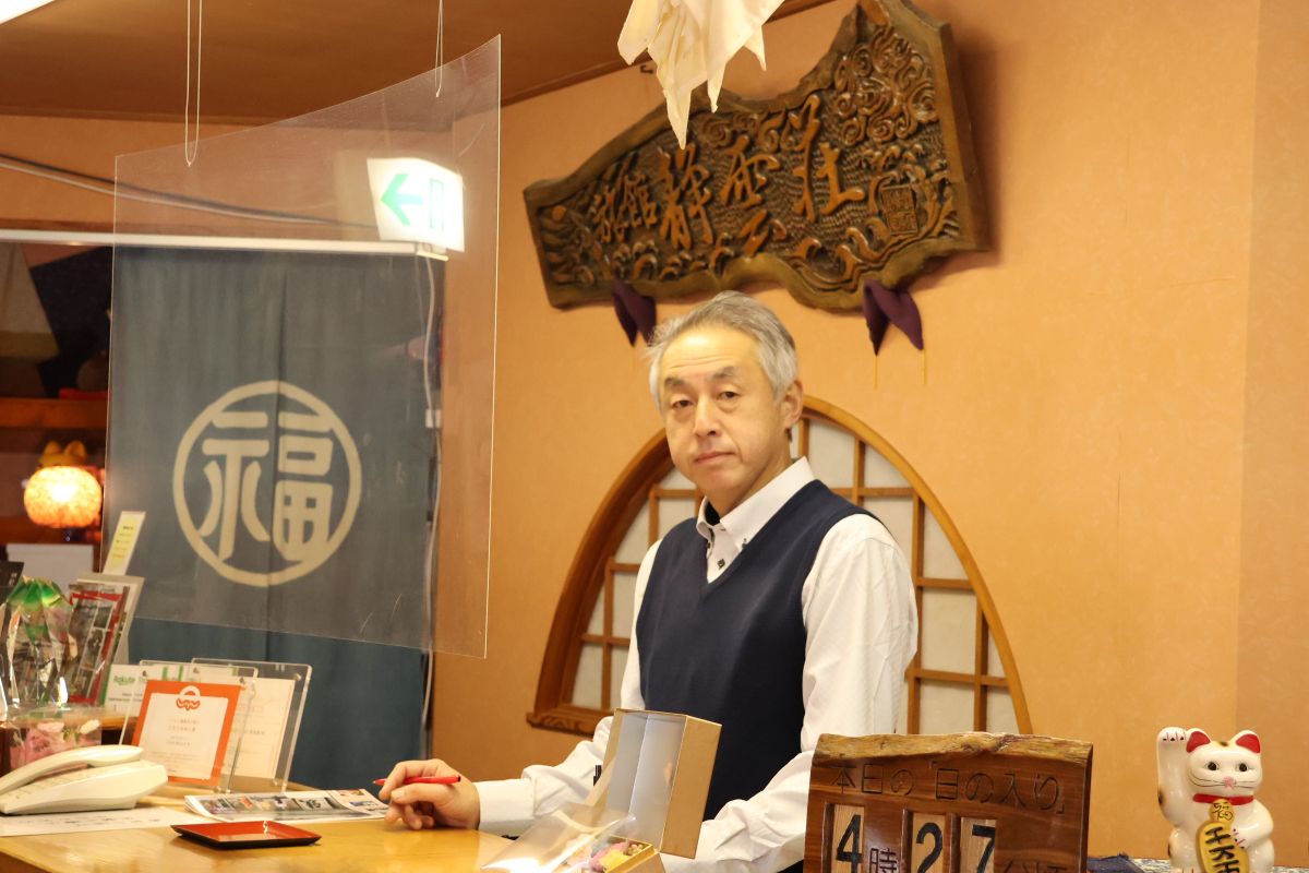 気さくで優しい支配人の大滝さん。瀬波温泉の観光スポットやおすすめのお店など、何でも聞いてみてください。