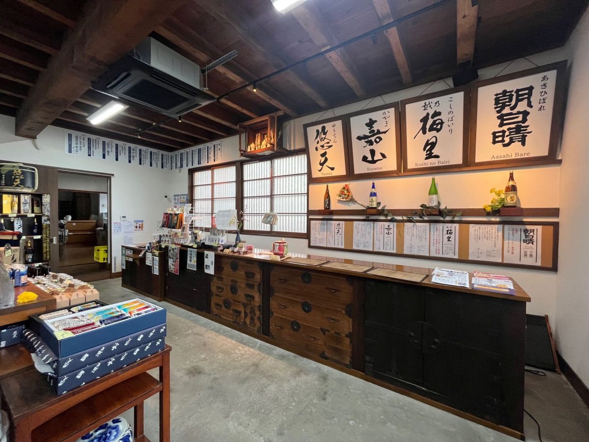 母屋を一部改装した直売所「越後の里 嘉山亭」では、定番酒から季節限定、直売所限定酒までそろい、