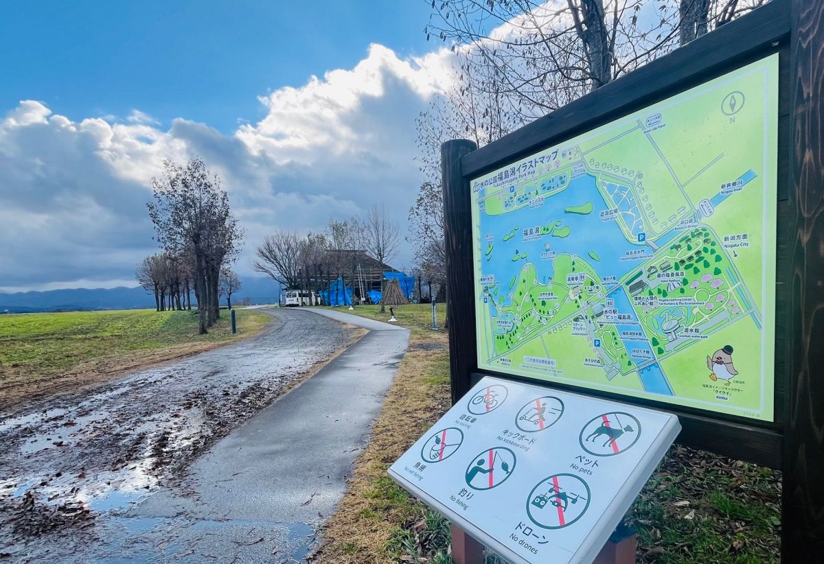 「日本の自然百選」にも名を連ねる福島潟の全景を確認したら、潟周辺をドライブ&散策。