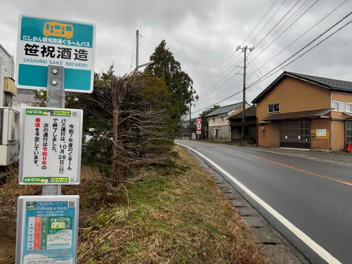 1899(明治32)年創業の笹祝酒造も、2025(令和7)年からバス停に仲間入り。
