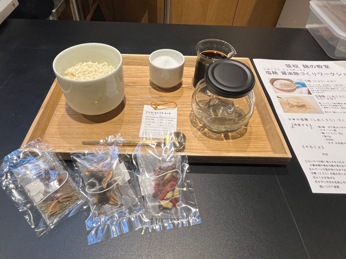 今回は塩麴に和のスパイスを追加した。持ち帰り、常温で約2週間発酵させれば完成!