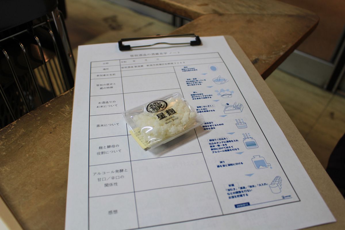 「勉強チックに見学した方がより印象に残り、日本酒に興味をもっていただけると思っています。シートはお持ち帰りいただき、酒造りを振り返ってもらえたらうれしいですね」