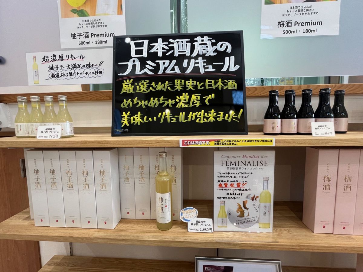梅酒や柚子酒などのプレミアムリキュールも販売している。