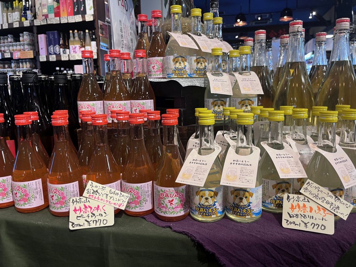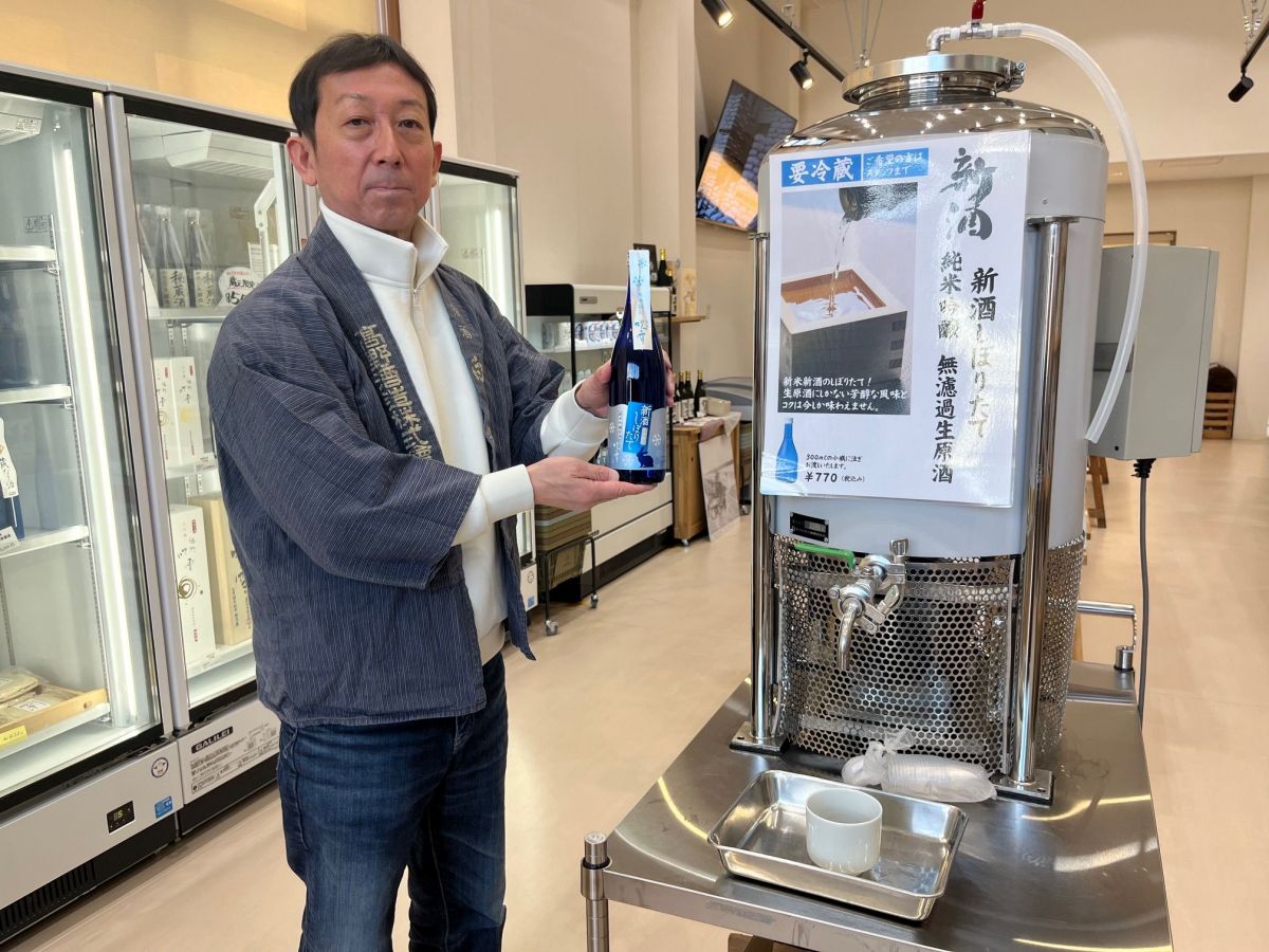リニューアルした直売所では県内限定酒や高級酒、数々の賞を受賞している飯米「新之助」を使った日本酒などがずらりと並ぶ。