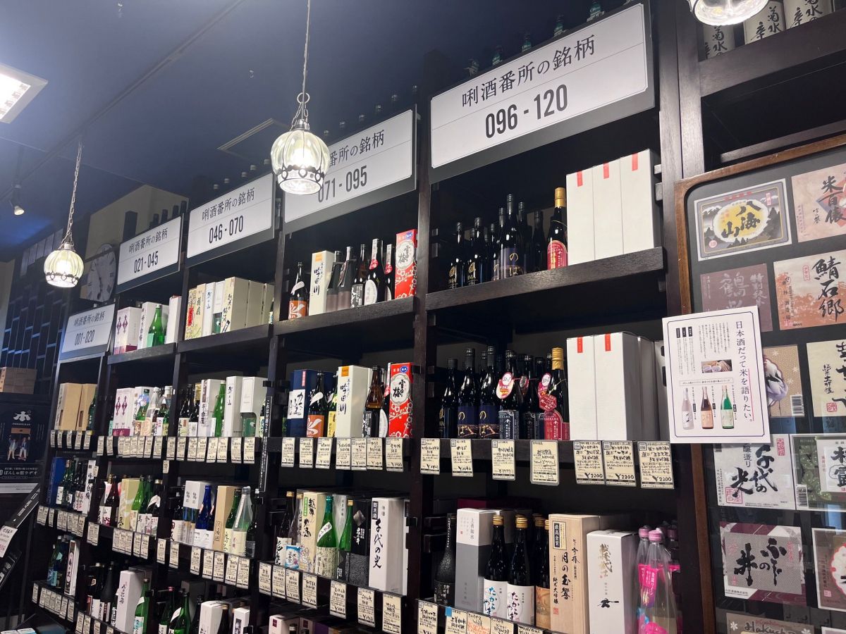 地酒売り場には、利き酒番所の番号が掲示されたコーナーがあり、利き酒して気に入った日本酒がすぐに探せるようになっている。