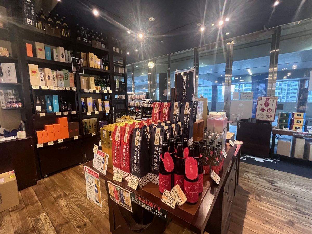 新潟の郷土料理などをつまみに地酒を楽しめる角打ちコーナーもある。
