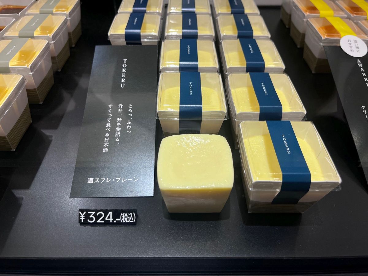 日本酒をふんだんに使ったスイーツ専門店で、看板商品の「酒スフレTOKERU」はチーズと日本酒それぞれがバランスよく主張しあい、まさに“すくって食べる日本酒”。