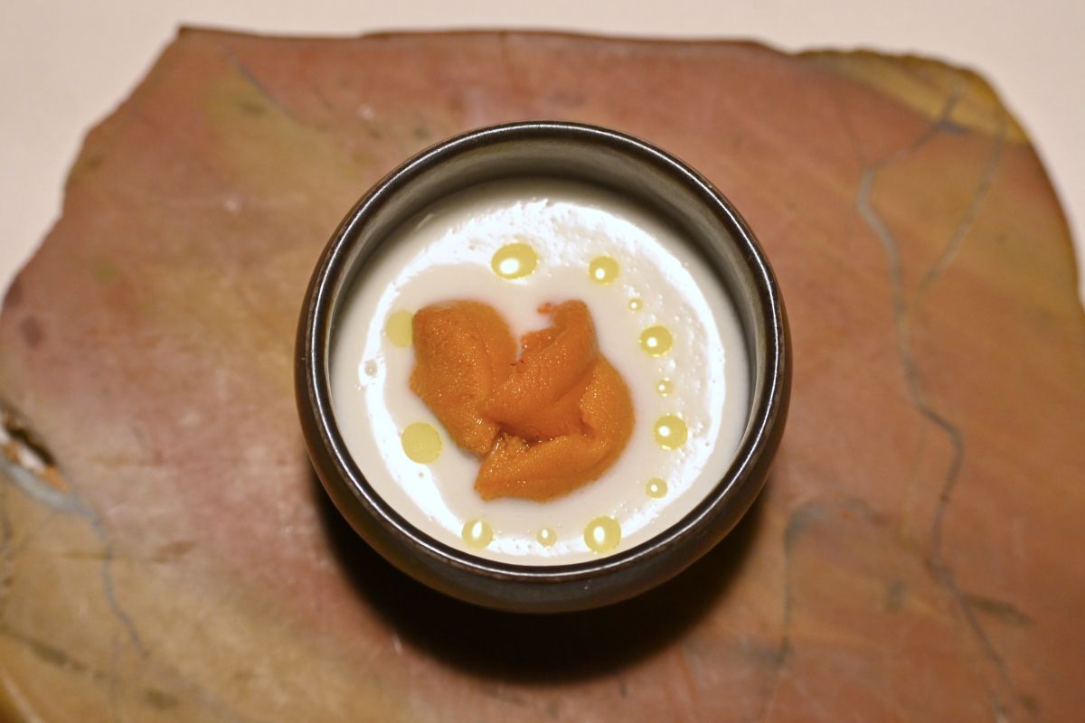 最初に運ばれてきたのは、新玉ねぎのブランマンジェと金山雲丹。