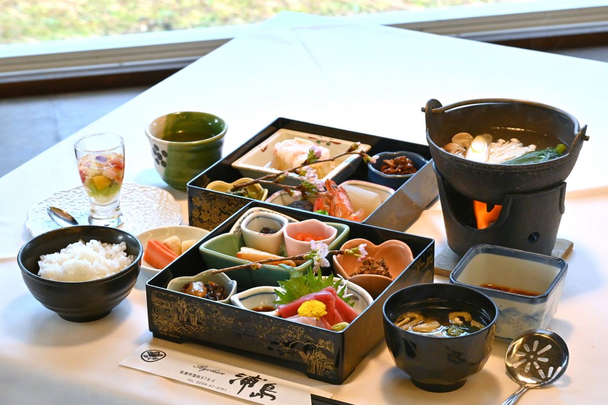 「食で佐渡を旅する」をテーマに、日本料理、フレンチ、鉄板焼と3つのレストランがあり、季節ごとの旬の食材を用いた本格会席や、須藤シェフによるフレンチなどを通して、佐渡の豊かな自然と文化を味わう贅沢なひとときを過ごすことができます。