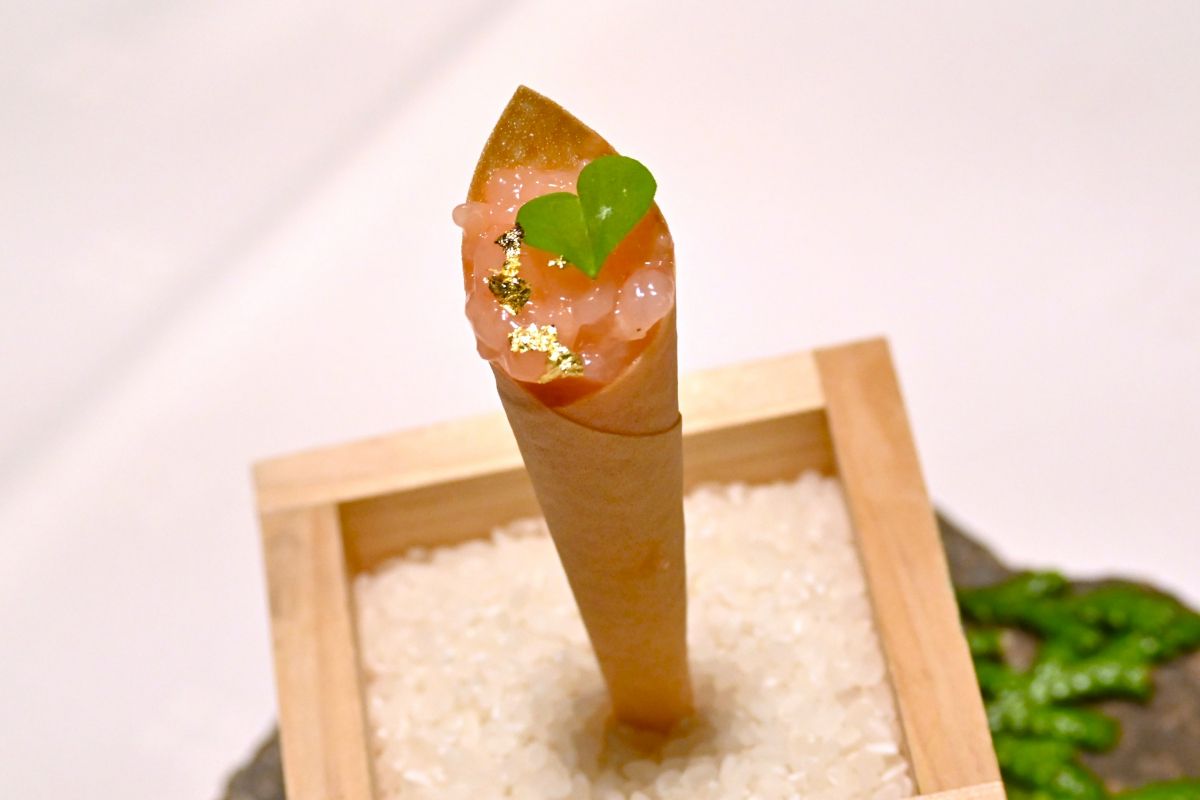 須藤シェフが大会で披露した料理の要となったのは、佐渡の郷土料理「ふぐの子の粕漬け」。ごまふぐの卵巣を2年以上塩蔵して毒を抜いた後、佐渡の酒粕で長期間熟成させるという、佐渡の珍味です。地域で受け継がれてきた味をフランス料理の技法で再構築するという挑戦でした。