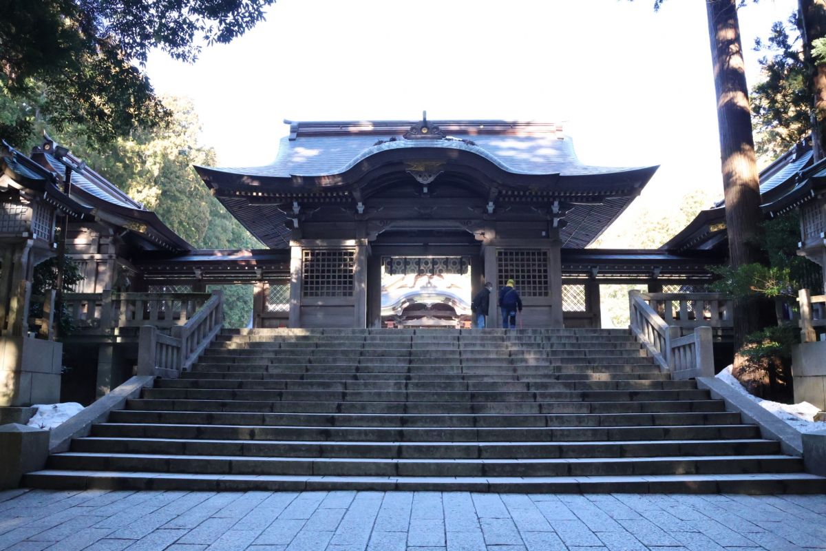 随神門前の階段は、初詣の時期には参拝客でなかなか前に進めないほど混雑する人気の神社です。