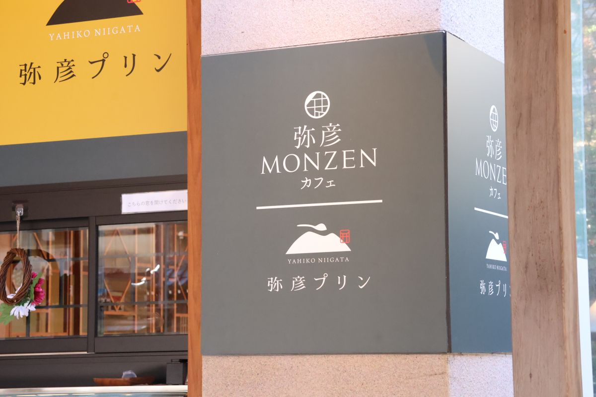 弥彦MONZENカフェの看板メニューは弥彦プリン。テイクアウトも可能です。