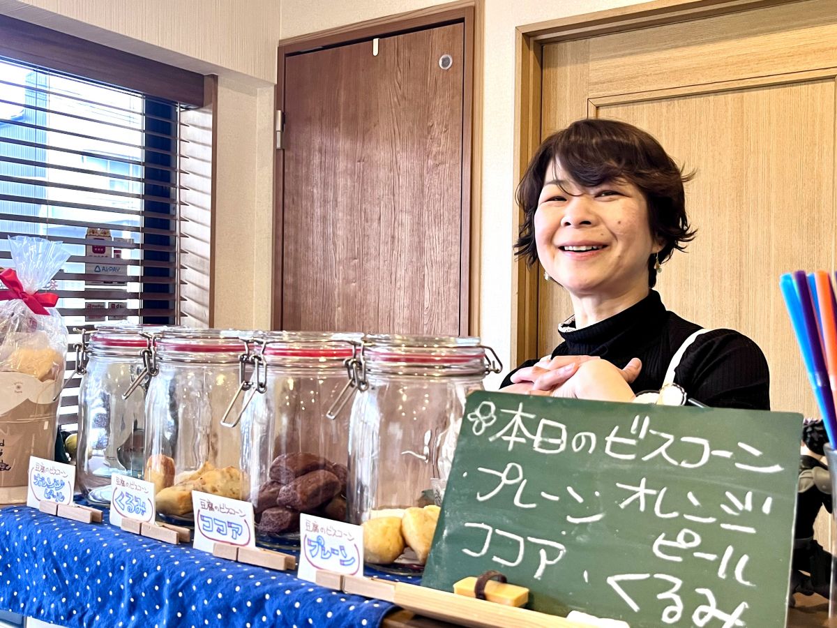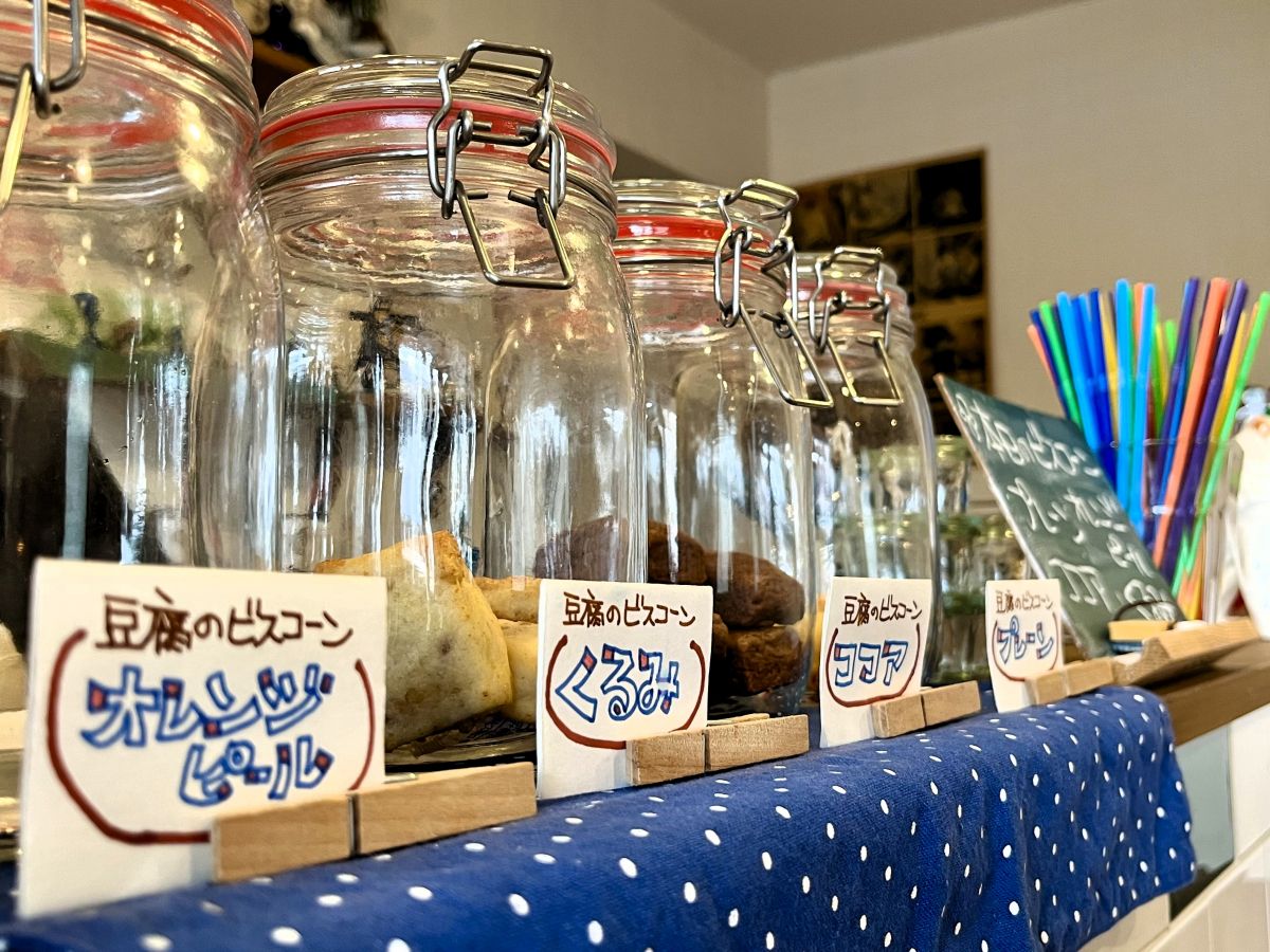 「豆腐が好きだから、豆腐を使ったおやつを作りたかったんです。自分でも焼けるようなものを探していて豆腐のスコーンのレシピをみつけたんだけど、これだと面白くないなって。お店にはいろんな年代の女性に来てほしかったから、極力カロリーを抑えて、クリームやジャムを付けなくても美味しく食べられるもの。食べても罪悪感のないおやつを作りたかったんです。ビスコーンは豆腐を40%使用しているんですよ。それ以上の使用だと食べた時におかず感を感じたのでおやつの印象になるギリギリを目指しました」