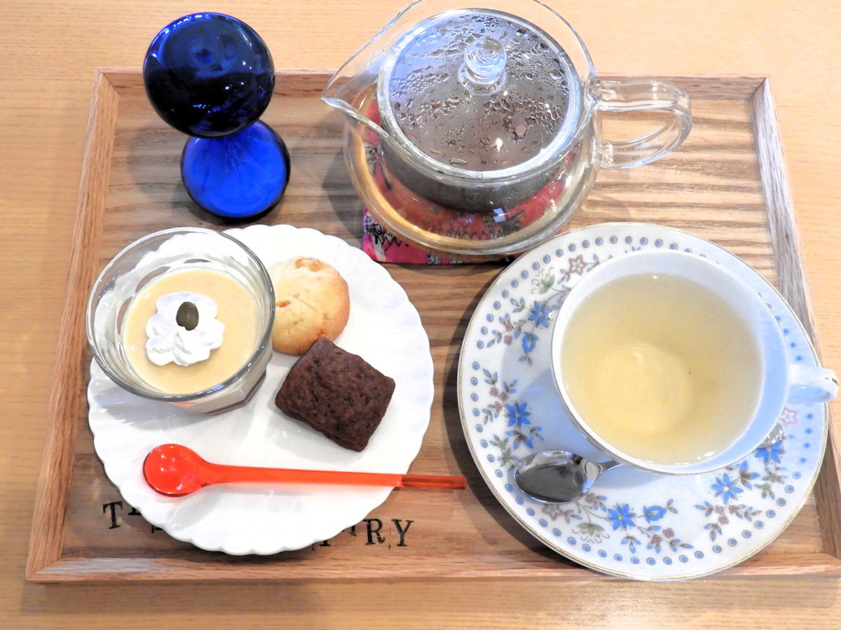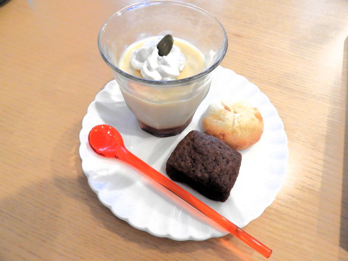 プリン(チャイップリンと豆乳orハニープリン)+ビスコーン(おまかせ2個)+ホットティー(選べます)のお得なセット♪