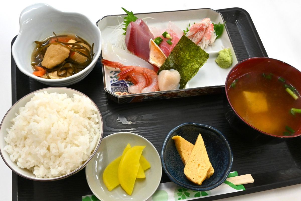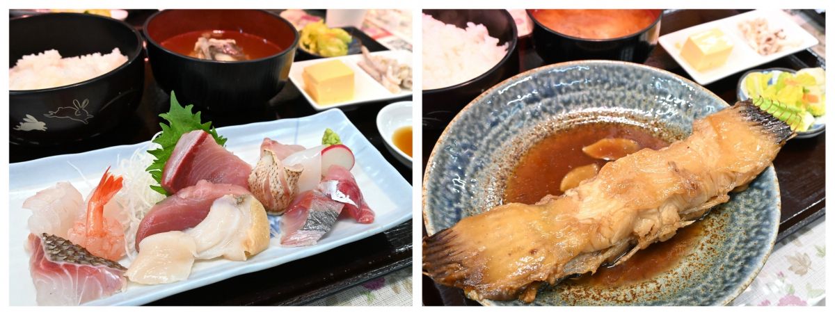 さらに、赤身から白身、貝類まで多くの種類を味わえる「刺身定食A」1,800円や、日替わりの魚の煮付けにご飯セット(+550円)を組み合わせることも可能。ボリュームもさることながら、魚の味は間違いありません。