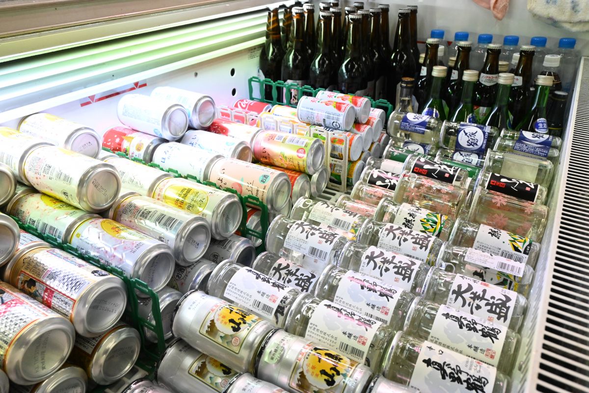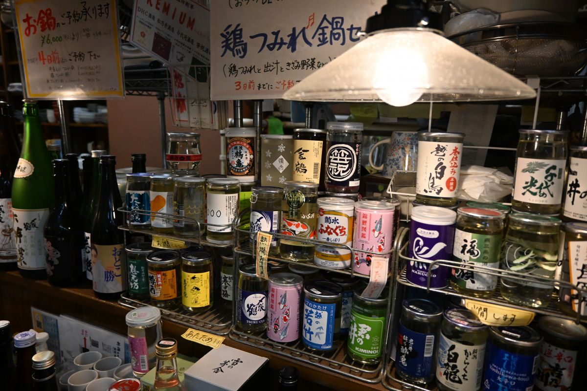 そしてご覧ください。お酒好きにはたまらない、ワンカップコーナー。辛口から旨口まで、同店が選んだ県内の地酒が十数種類そろいます。ビールやサワーもあり、好きなものを選び、後で会計するという気軽さもたまりませんねぇ。その他、こちらのコーナー以外に、生ビールや日本酒(1合~)もありますよ。