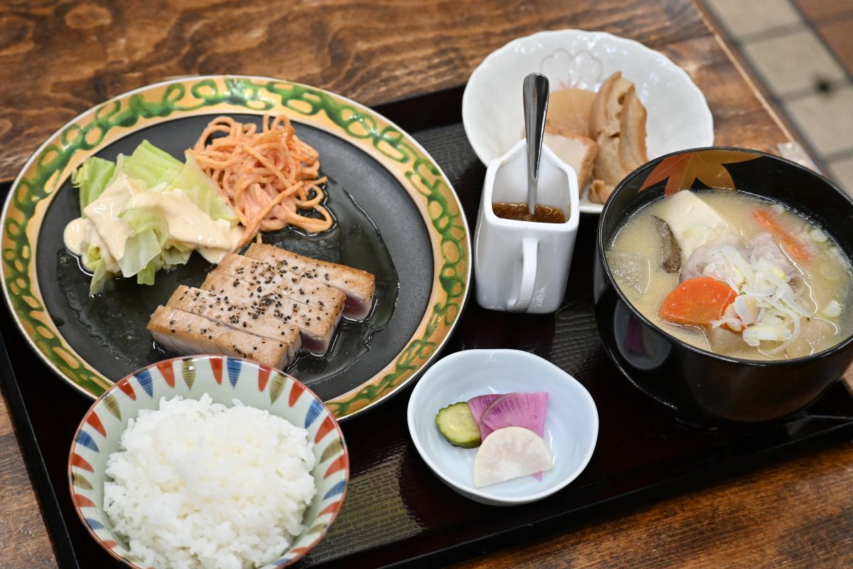 チャーシューを仕込む際の煮汁に根菜を合わせて煮込み、注文ごとに豆腐や肉、仕上げの味噌を加えて完成させます。そのため、常時あるメニューではなく、出合えたらラッキー。具だくさんで満足感があり、これを目当てに訪れる人も少なくないそうです。定食や丼ぶりの味噌汁を+600円で豚汁に変更することもできますよ。
