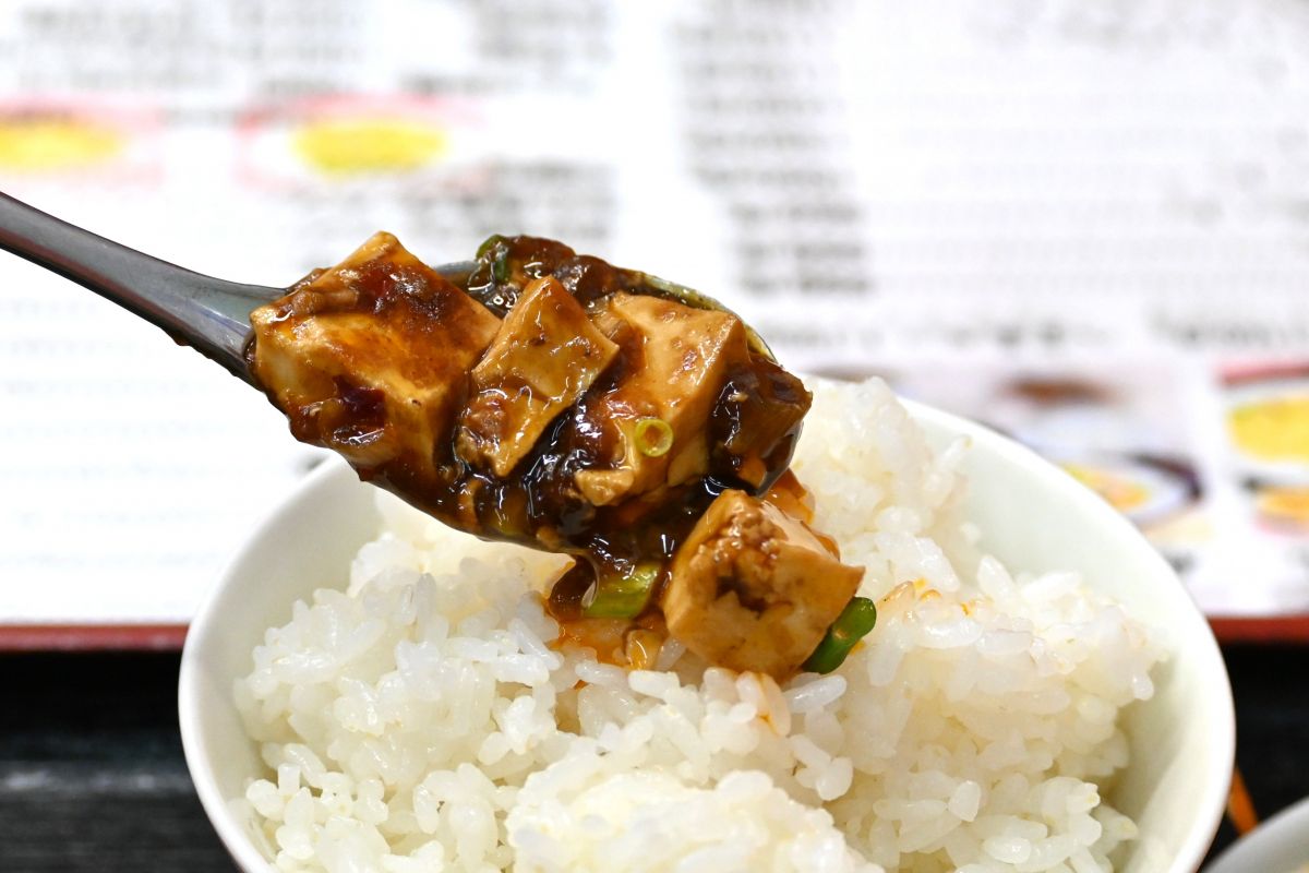 まろやかなコクがありながら、味付けはしっかりめで、ご飯がどんどん進みます。後からじんわりと広がる香りも心地よく、丁寧につくられた麻婆豆腐という印象。辛さを足したい人は、卓上の調味料で好みに合わせて調整できるのもうれしいところです。
