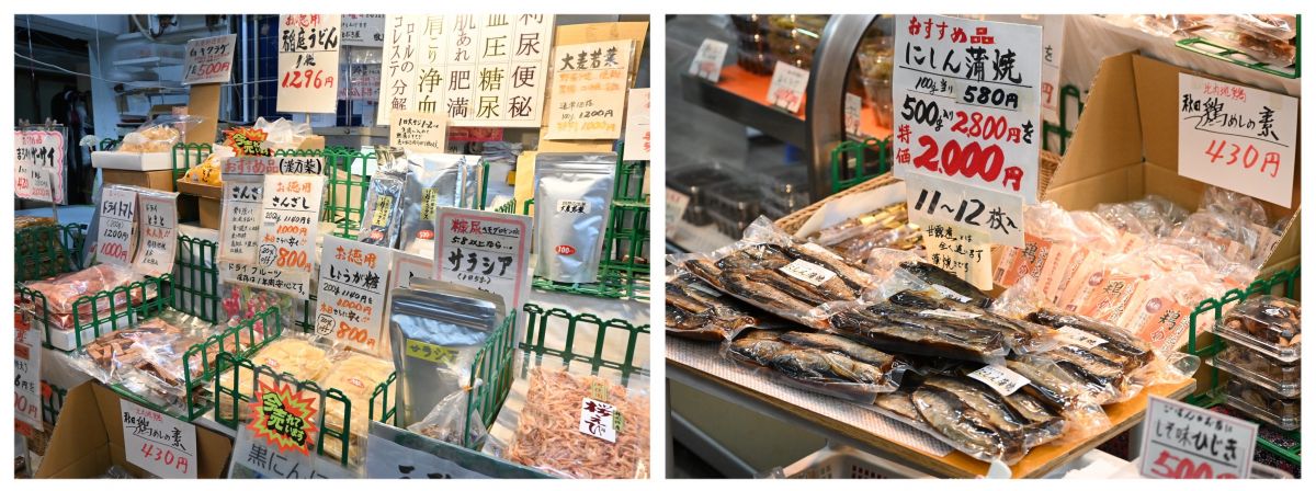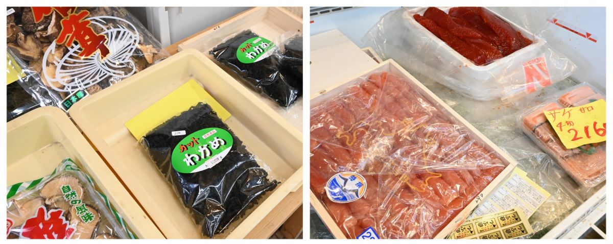 青海ショッピングセンターが開業した当初から、長年にわたりこの場所で海産物の加工品を中心に販売してきました。鮮魚店とは少し趣が異なり、扱うのは筋子、たらこ、塩鮭、乾物など、日々の食卓に寄り添う品々。昔から変わらず、この店を目当てに通う常連客も多いそうです。