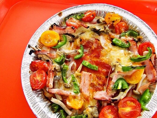 野菜、ベーコン、チーズをのっけたら完成~~。