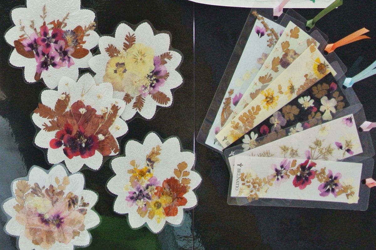 木や実や花を使った様々な体験プログラムがあり、ドライフラワーや木の実によるリース作りや、 押し花のしおりやコースターなどが作れます。