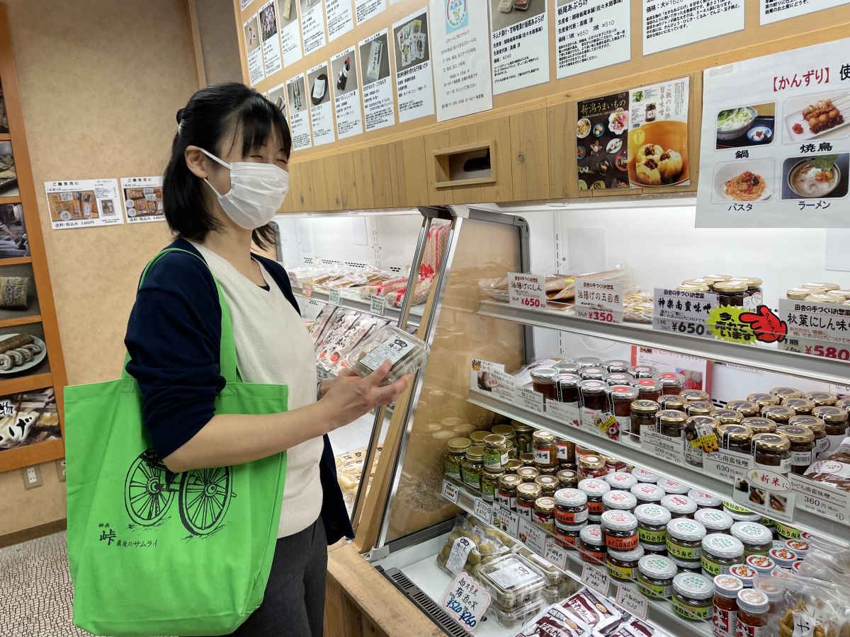 他にも、あんこの入った団子を赤飯で包んだ「おこわ団子」、「越乃塩」、「竹パウダー」などたくさんのおススメを紹介してくださいました。初めて聞く「竹パウダー」はぬか漬け床に混ぜると、竹の持つ乳酸菌が活動し発酵が始まり、さっぱりとした漬物に仕上がるそうです。また、一般のぬか漬けの半分の塩の量でつくれるので、体に優しい減塩漬物になります。