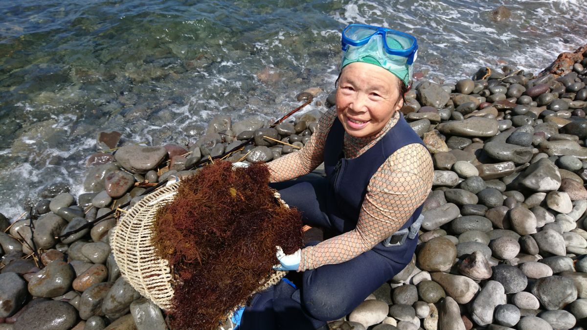 柏崎・笠島の海の幸「サザエ・もずく・えご」漁が解禁し、海岸では海士(あま)さんの姿を見かけます。
