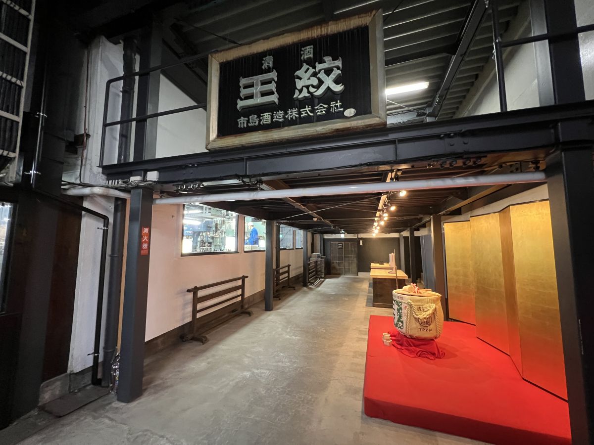 もう一方の入り口から入ると、開けた倉庫部分(旧仕込蔵)にたどり着きます。写真では、何もない空間ですが、実はこの場所、新潟では珍しい本格的なプロジェクションマッピングを楽しめる、アミューズメント空間。1人1,000円(試飲付き)で当日利用も可能ですが、人数制限があるので、事前の予約がおすすめです。