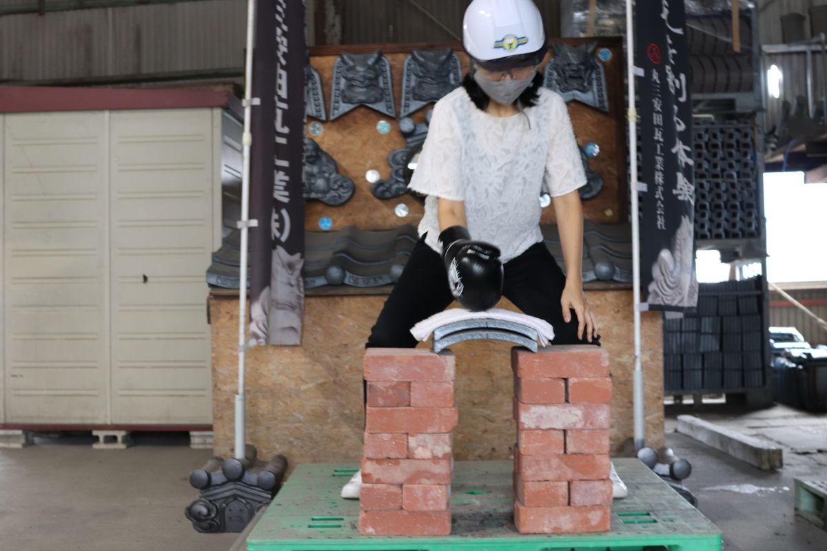 安田瓦の聖地で瓦割りに初挑戦:丸三安田瓦工業