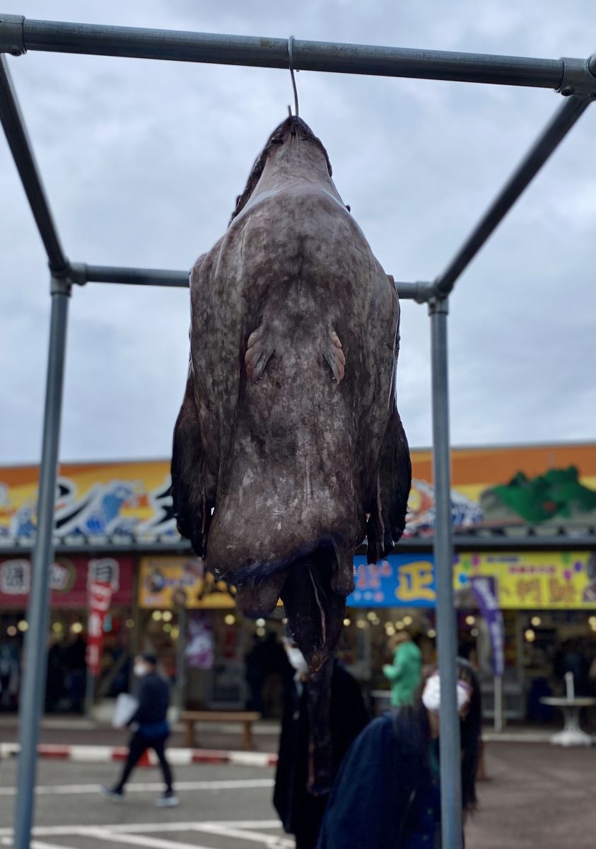 つるされているあんこうを間近で見て、その大きさにびっくり!
