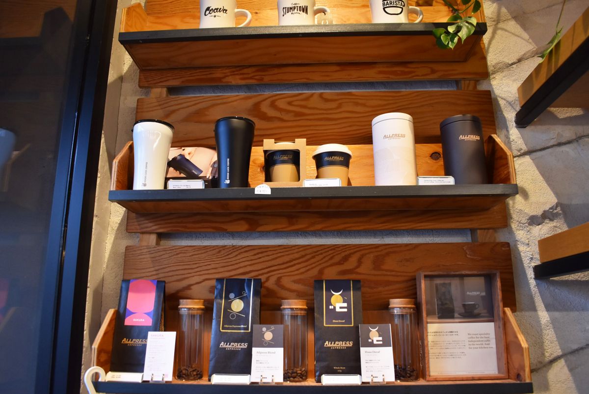 コーヒー豆やカップも販売されていました。