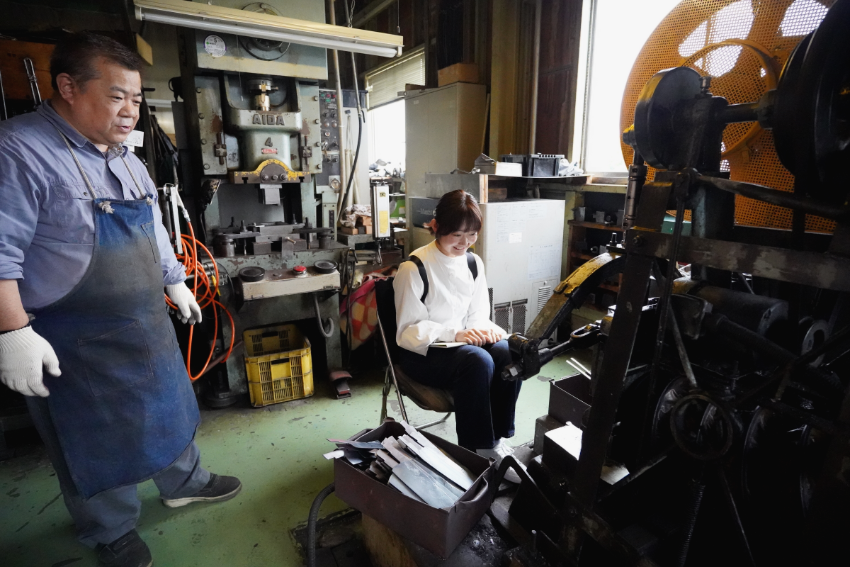 「包丁のメンテナンスをしてもらいたいし、どんなふうに作られているかも知りたい!」ということで、今回はこちらの方に案内していただきます。