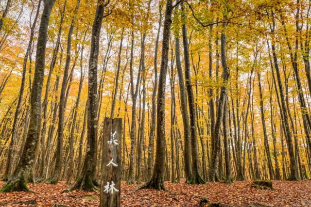 夏は鮮やかな緑に包まれ、ブナの木の間を吹き抜ける清々しい風を感じることができます。 (周辺より気温が2℃低いと言われています)