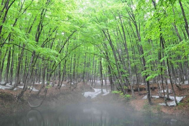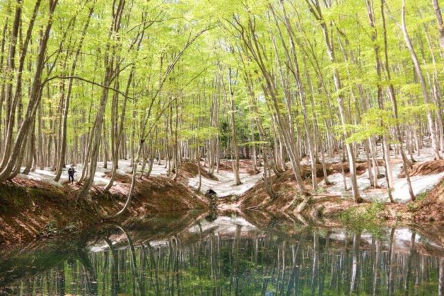 新潟・松之山松口の3haほどの丘陵に、樹齢約100年のブナの木が壮大に生い茂る“美しすぎるブナ林”。春は残雪の中に芽吹く若葉が春陽の訪れを届け、夏には鮮烈な緑に色づいた木々から吹き抜ける爽やかな風が頬をなでる。そして、名画のような紅葉空間に目を奪われる秋、陽の光を浴びた雪がきらめく銀世界の冬――。野鳥の生息地としても保護されている美人林は、日本の四季の豊かな表情を感じさせてくれる。