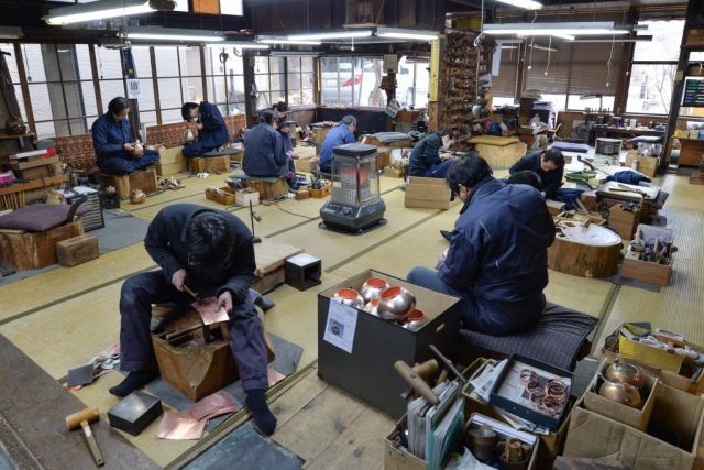 江戸時代後期から200余年にわたり継承される鎚起銅器の制作工程を見学できます。玉川宣夫は重要無形文化財(人間国宝)、玉川堂の店舗・土蔵・鍛金場・雁木は国の「登録有形文化財(建造物)」に指定されています。