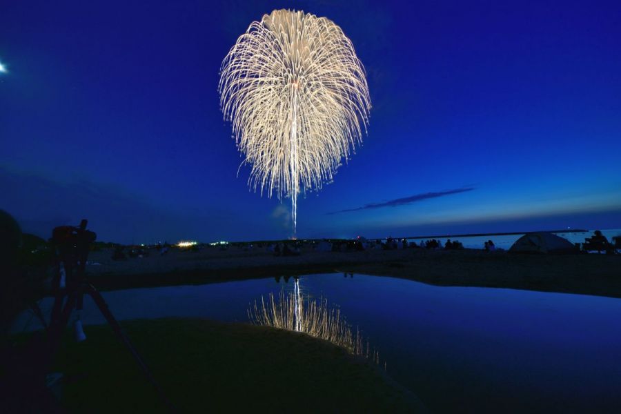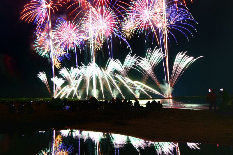 てらどまりみなとまつりかいじょうおおはなびたいかい海中、海空に花咲く大スターマインに感動