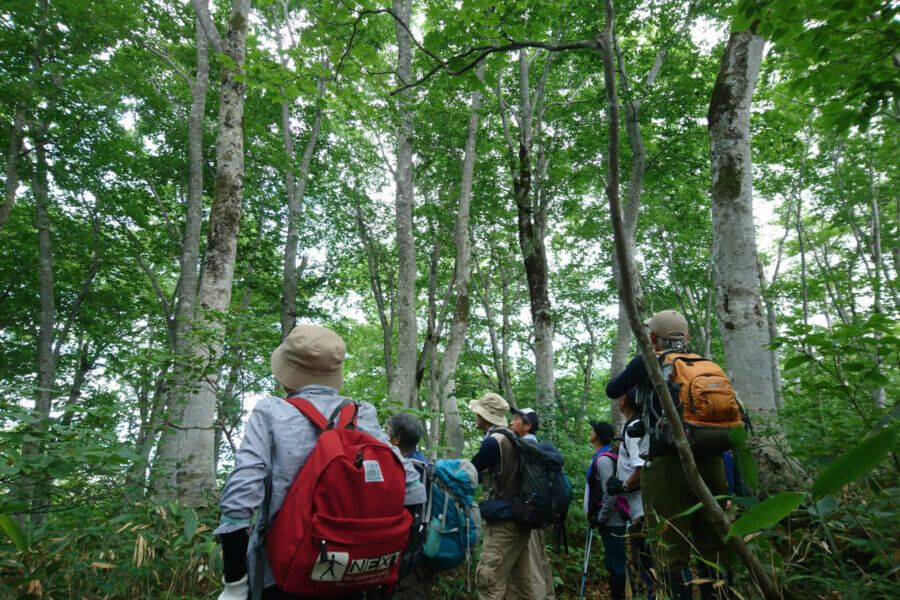 本トレッキングはブナの原生林が楽しめる往復約5時間の健脚コース。自然観察指導員が同行いたします。