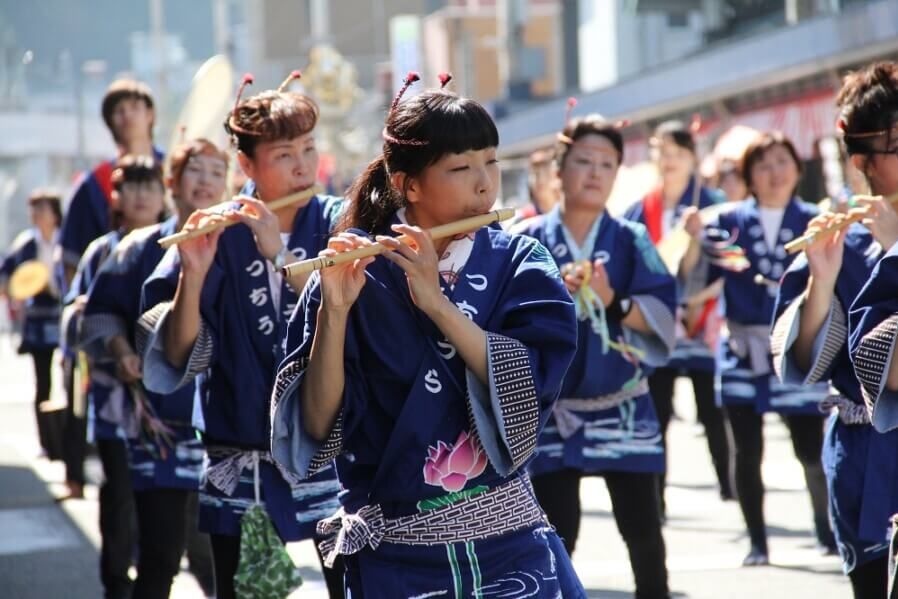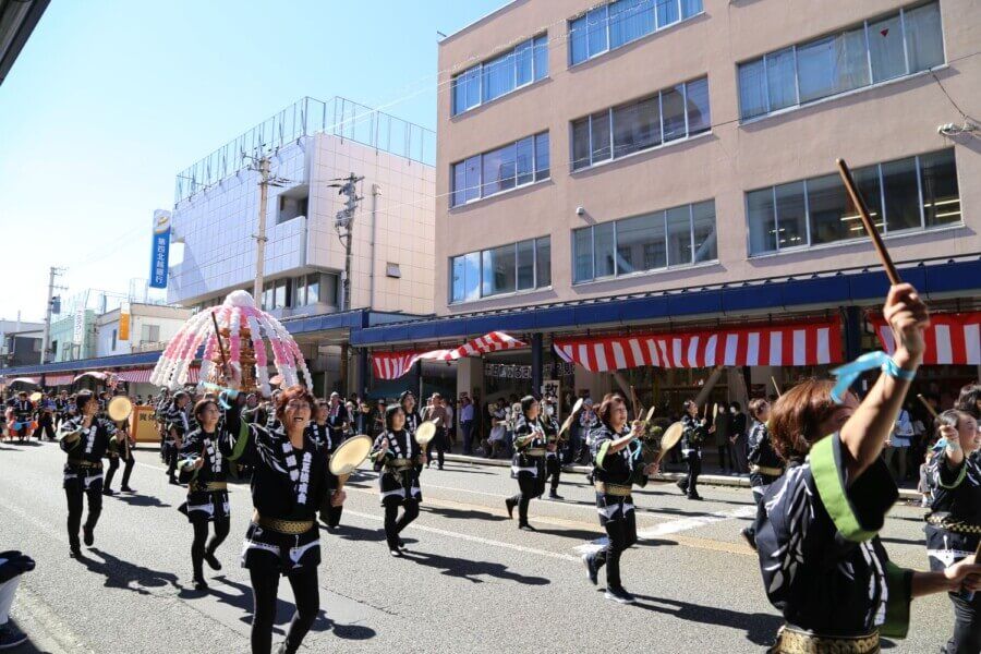 ・市中行進(本町1丁目~本町4丁目 約550m)全国各地の郷土芸能、万灯、纏、鼓笛隊、創作ダンス 等
