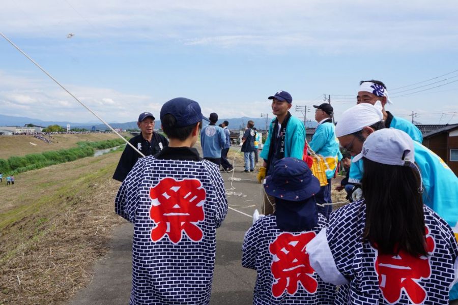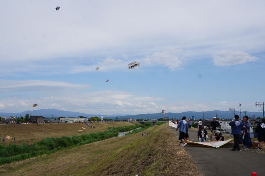 信州の旅人が凧揚げをしたのが起源と言われています。その後、天明年間に入り、堤防の地固めの一策として人を集めて、刈谷田川をはさんで行ったのが今日の大凧合戦の始まりと伝えられています。