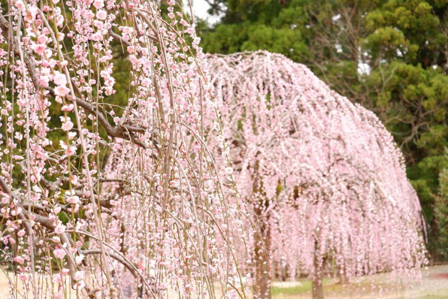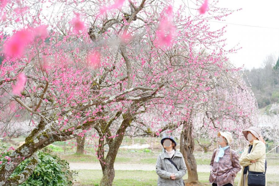 梅林公園では、ブランド梅「越の梅」をはじめ、白梅や紅梅、しだれ梅などが咲き誇ります。園内を散策しながら、春の訪れを感じませんか。