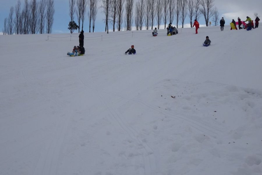 遊び方は無限大!緑の千畳敷が一面の雪遊び広場に!