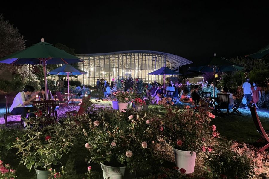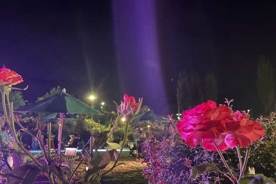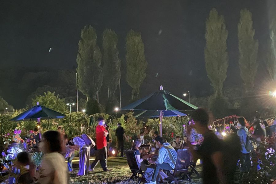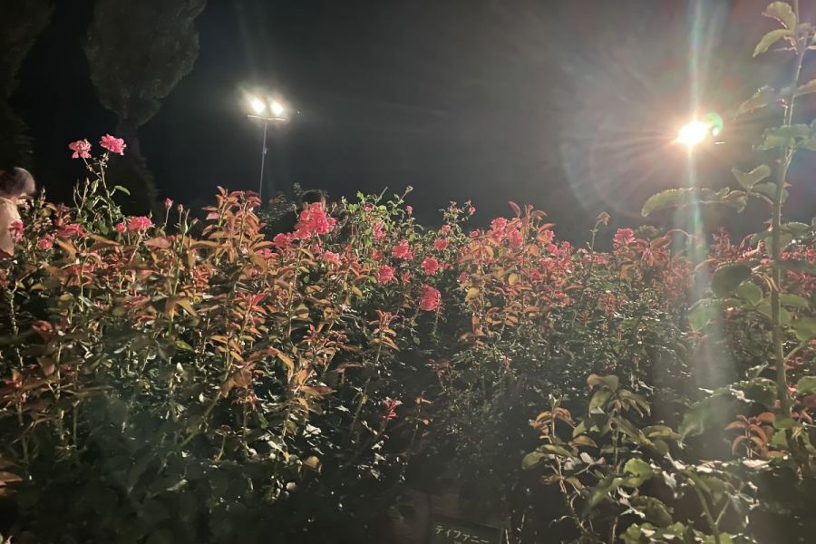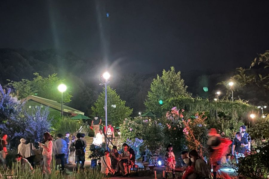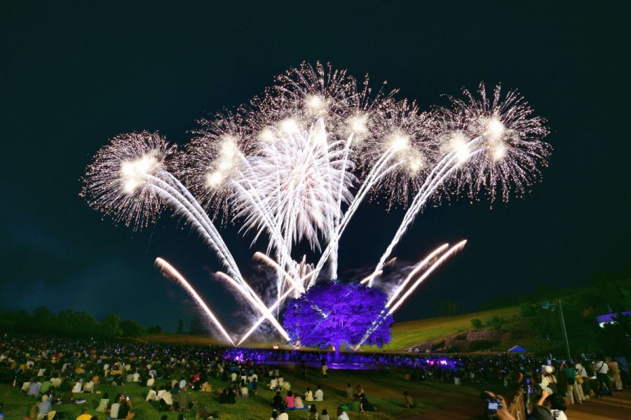 国営越後丘陵公園で、バラのライトアップと長岡花火が夢の共演!