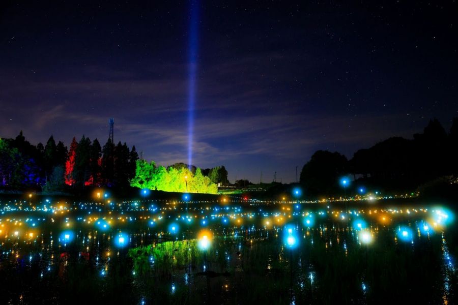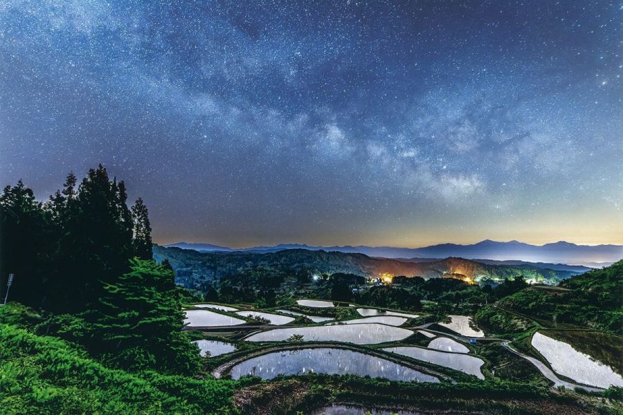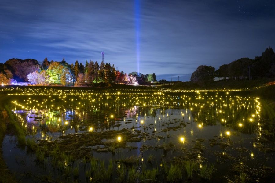 自然と人がつくり出した美しい棚田と、錦鯉が育つ棚池をライトアップ。
