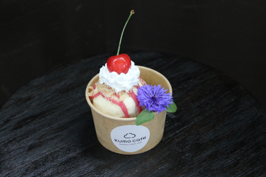 お召し上がりは昨年、9月に新しく営業を開始した、kumo cafeの開放感あふれるオープンデッキ席で、澄み切った高原の空気と、南魚沼の雄大な山々を望む絶景の中でスイーツを楽しめる、まさに非日常のひとときをご体験いただけます。