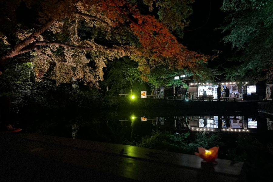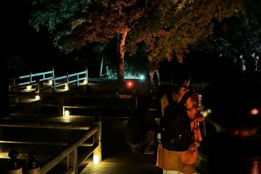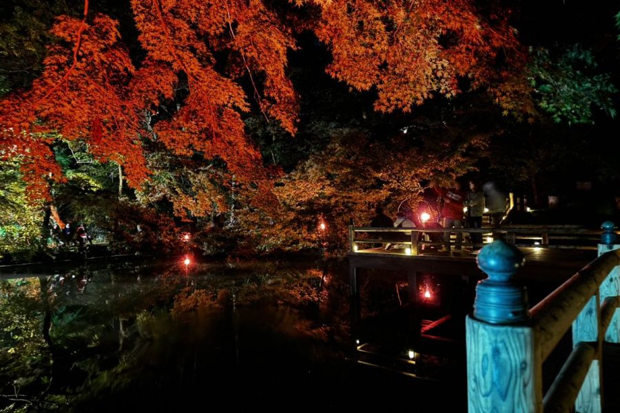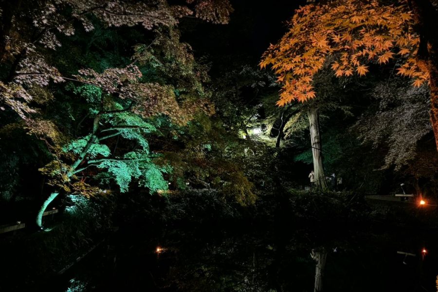 かもやまこうえんこうようらいとあっぷ加茂山の紅葉を照らす秋の幻想空間