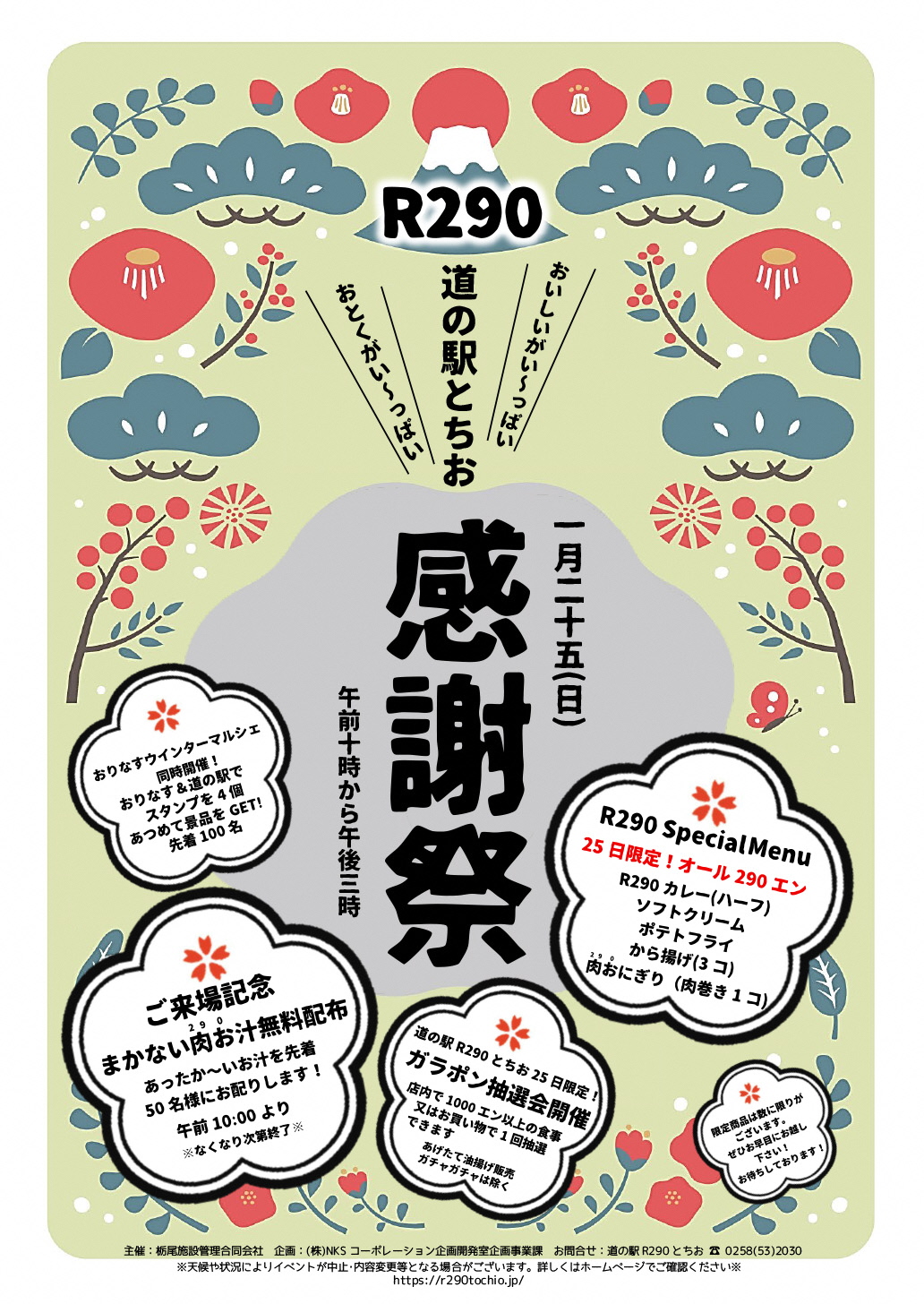 1日限定の感謝祭 として『R290』にちなみ、来場記念でまかない肉お(290)汁の無料配布(先着50名)や、