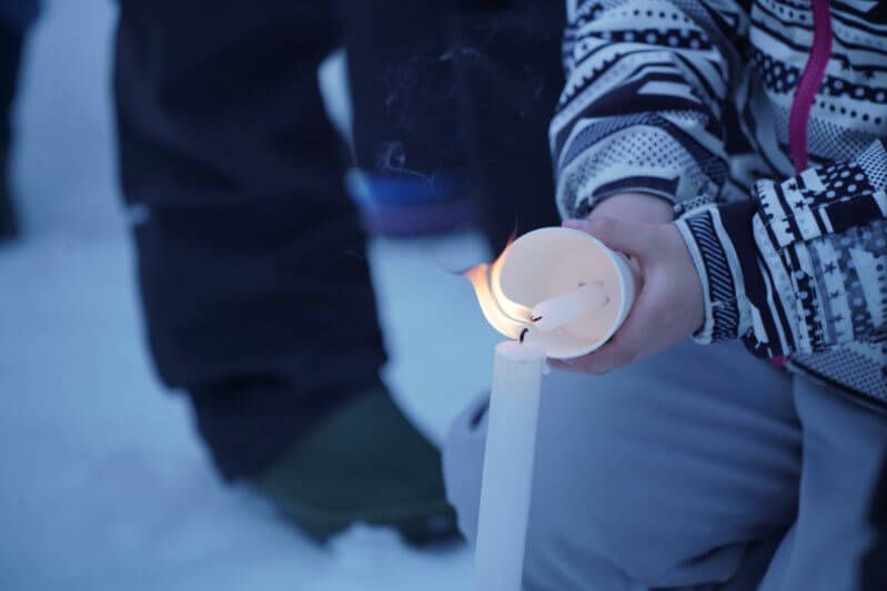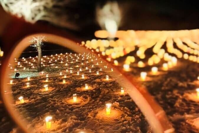 せつげんかーにばるなかさと雪原に広がるスノーキャンドル