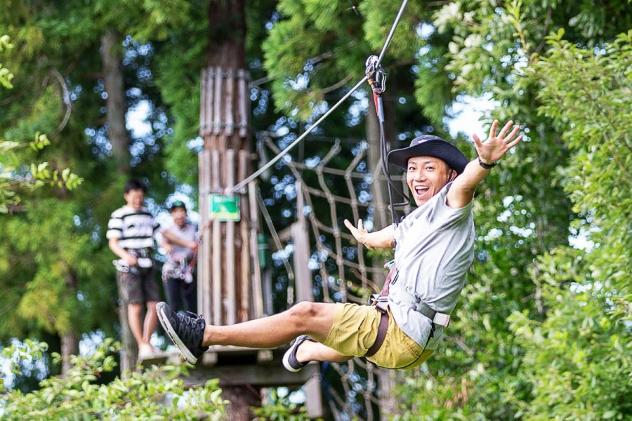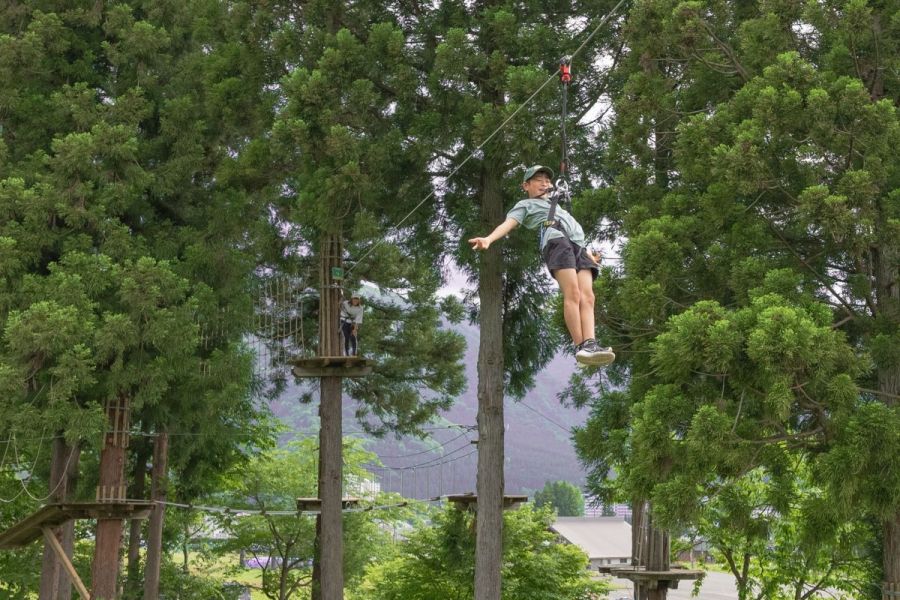 新潟県湯沢町にある「フォレストアドベンチャー・湯沢中里」は、自然の立ち木を活かして作られた本格アウトドアパーク。